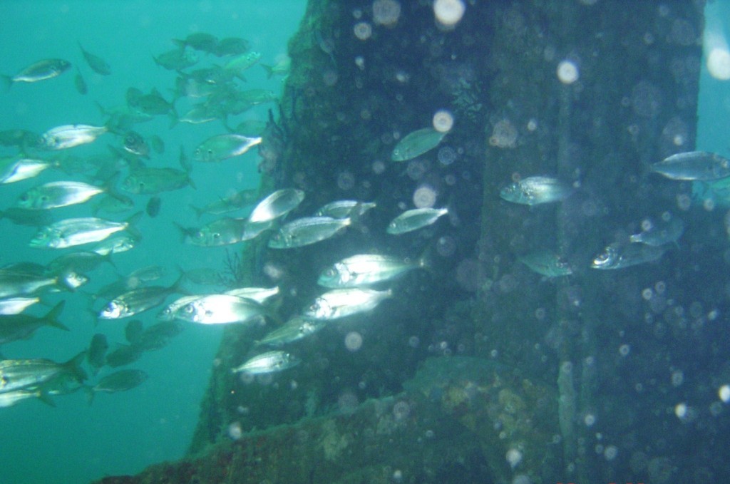 Wracktauchen als Guide der European Diving School St. Tropez, Süd-Frankreich, Wrack: Le Relax, Handels-Frachtschiff // La Poursuivante, Franz. Zerstörer aus 1. Weltkrieg // u.v.m., Juni-August 2003